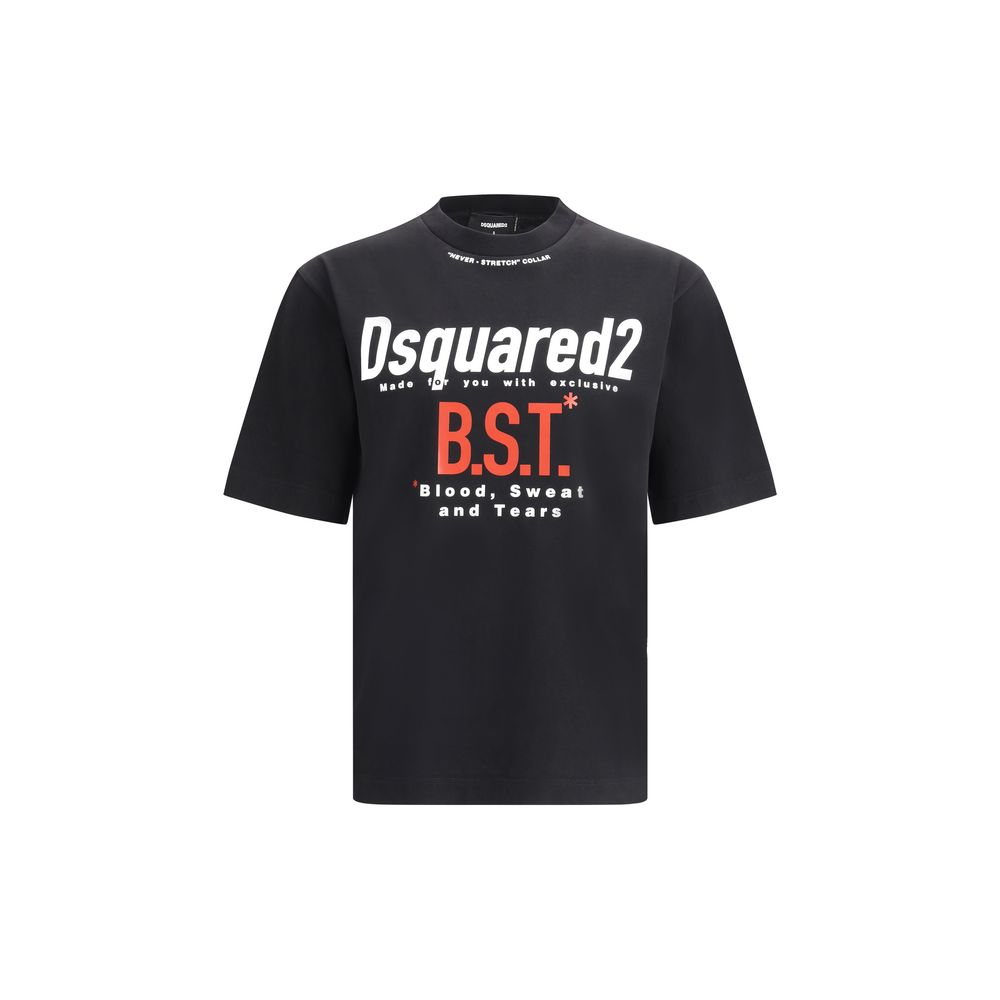 Cotton T-Shirt by Dsquared2, ribbed crew neck, contrasting iconic brand monogram maxi print on front, monochrome pattern, regular fit.