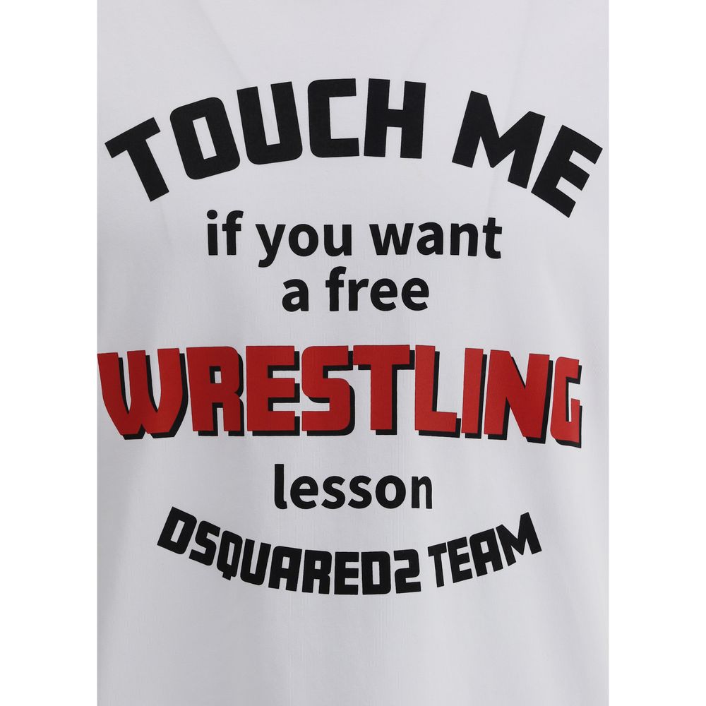 The Dsquared2 cotton T-Shirt is a modern piece with a strong character. The ribbed crew neck offers a comfortable and refined fit, while the front features a maxi writing that captures attention, accompanied by the iconic monogram of the brand, which adds a touch of recognisability and style.