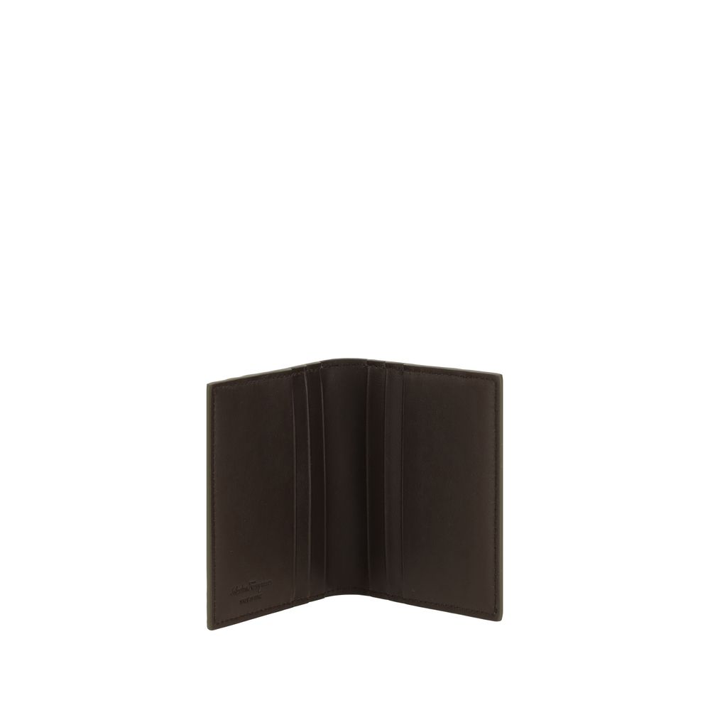 Ferragamo leather Card Hcardolder, billfold model with iconic Gancini plaque applied on the front for a distinctive touch. It features card slots inside, on the front and back panel, and the iconic monogram press-stamped on the inside panel, adding an element of elegance and functionality. A practical and luxurious accessory to organize essentials in style.